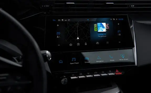 - Jaunais PEUGEOT 308 ievieš pilnībā konfigurējamus virtuālos i-toggle taustiņus. Izkārtoti pie centrālā ekrāna, tie piedāvā šajā segmentā unikālas estētiskās un tehnoloģiskās priekšrocības. Lielākai ērtībai un drošībai katram i-toggle taustiņam ir pielāgojama jūsu izvēlēta saīsne uz kādu no centrālajā ekrāna funkcijām (gaisa kondicionēšanas iestatījumi, tālruņa kontakti, radio stacijas, lietotņu palaišana u.tml.).