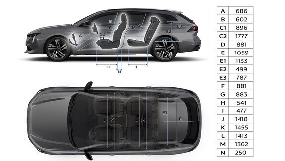 ВНУТРЕННИЕ ГАБАРИТЫ PEUGEOT 508 SW